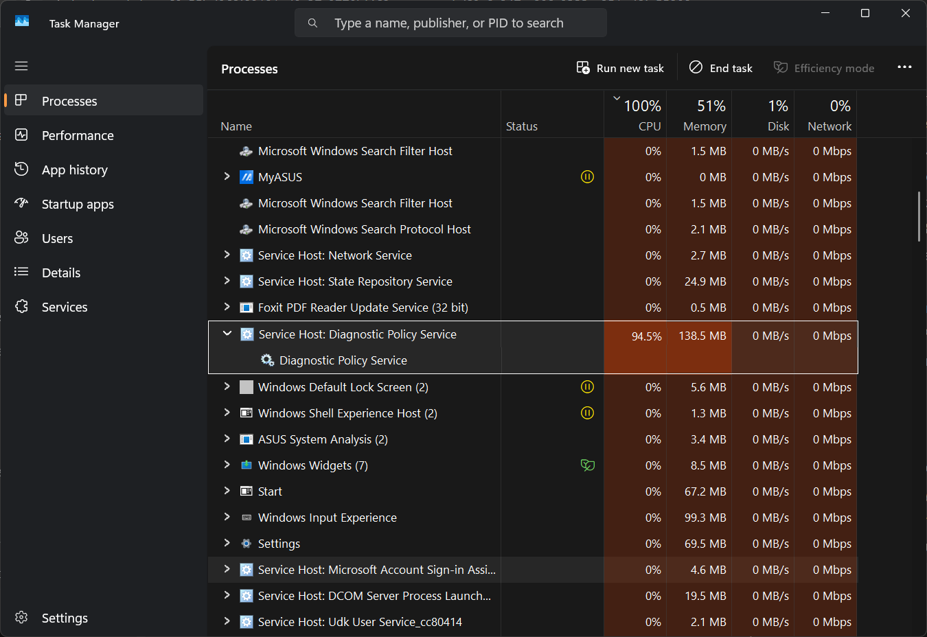 Diagnostic Policy Service High CPU Problem: The Causes and Fixes for Windows By Will Wisser Posted on November 7, 2025 3 min read 0 13 1. Introduction Diagnostic Policy Service (DPS) is a built-in Windows service (service name: DPS) that enables problem detection, troubleshooting, and automatic remediation for Windows components. It runs under svchost.exe and powers scenarios like network connectivity checks, boot/shutdown performance diagnostics, and disk S.M.A.R.T. alerts. Under normal conditions it’s lightweight. When DPS pegs CPU or disk, it’s usually because its diagnostic data store or dependencies are unhealthy (e.g., a bloated or corrupt SRU database, damaged performance counters/WMI, or a device/driver fault that keeps retriggering diagnostics). Disabling DPS is a blunt workaround that breaks Windows’ built-in troubleshooting and is not recommended except for specialized images. This tutorial walks you through quick triage and then clean, reversible fixes that address root causes without sacrificing system diagnostics. 2. Quick Triage (do these first) 2.1. Restart DPS cleanly Open Services (services.msc) → Diagnostic Policy Service → Restart. Or run (Administrator Command Prompt): net stop DPS & net start DPS If CPU stabilizes only briefly, continue. 2.2. Reboot once A reboot can clear stuck diagnostics and release handles on the SRU database. 2.3. Windows Update + driver refresh Install pending updates, then update network/storage drivers from the vendor (these devices most often retrigger DPS scenarios). 2.4. Temporary pressure relief (optional, last resort in a pinch) Set Diagnostic Policy Service → Startup type: Manual and reboot. This reduces CPU immediately but turns off built-in diagnostics (network, performance, disk alerts). Treat as temporary only. 3. Prerequisites 3.1. Admin rights Ensure you have administrator rights on the affected PC. 3.2. A restore point or backup Create one especially before steps that reset databases or rebuild subsystems. 3.3. Tools (optional but recommended) Process Explorer (Sysinternals) to confirm the hosting svchost.exe is Microsoft-signed (Options → Verify Image Signatures). Sigcheck (Sysinternals) to verify signatures from the command line: sigcheck -m C:\Windows\System32\svchost.exe These help rule out malware masquerading as a Windows service. 4. Step-by-Step Guide 4.1. Identify the culprit clearly Open Task Manager → Processes. Look for Service Host: Diagnostic Policy Service consuming CPU. Right-click → Open services to land on Diagnostic Policy Service (DPS). This confirms you’re targeting the correct service. 4.2. Rule out tampering (fast sanity check) In Process Explorer, enable Options → Verify Image Signatures and select the svchost.exe instance hosting DPS. It should be verified as Microsoft Windows with path C:\Windows\System32\svchost.exe. CLI alternative: sigcheck -m C:\Windows\System32\svchost.exe should report a valid Microsoft signature. If signatures are invalid/missing, perform a full malware scan before proceeding. 4.3. Reset the SRU (System Resource Usage) database that DPS relies on SRU (C:\Windows\System32\SRU\SRUDB.dat) tracks per-app resource/network usage and feeds diagnostics. When it grows large or gets corrupt, DPS can loop hard on CPU/disk. The safest fix is to stop DPS and delete/rename the SRU folder; Windows will recreate it. You’ll lose historical app/data-usage stats, but nothing critical. Administrator Command Prompt: net stop DPS net stop WdiServiceHost net stop WdiSystemHost ren C:\Windows\System32\SRU SRU.old rem Reboot, or start the services again: net start WdiSystemHost net start WdiServiceHost net start DPS If you previously saw ESENT errors that mention SRUDB.dat, they should cease after this reset. 4.4. Repair Windows component health (DISM) and protected files (SFC) Corruption in system binaries can make DPS scenarios misbehave. Administrator Command Prompt: DISM /Online /Cleanup-Image /RestoreHealth sfc /scannow Reboot if SFC reports repairs. 4.5. Rebuild performance counters (only if counters are broken or PerfMon looks odd) Corrupt counters can cause services hosted in svchost.exe to misbehave. Administrator Command Prompt: lodctr /r If some counters remain missing, rebuild them per Microsoft guidance. Reboot after. 4.6. Validate and repair WMI if you see WMI-related errors DPS can query WMI extensively. A corrupt repository can create sustained load. Administrator Command Prompt: winmgmt /verifyrepository winmgmt /salvagerepository If the repository is still inconsistent (rare), rebuild per Microsoft guidance and reboot. 4.7. Fix network stack churn (if spikes correlate with network issues) Misconfigured adapters or stack corruption can cause DPS to run network diagnostics constantly. Update or roll back network adapter drivers (Device Manager). Administrator Command Prompt: netsh winsock reset ipconfig /flushdns Reboot and retest. 4.8. Right-size DPS workload (admins/IT, optional) In managed environments you can dial down execution or cap scenario data so diagnostics don’t build up excessively. Group Policy (Pro/Enterprise): Computer Configuration → Administrative Templates → System → Troubleshooting and Diagnostics → configure Scenario Execution Level for specific areas (Boot, Shutdown, Standby/Resume, Resource Exhaustion). Choose Detection and troubleshooting only to reduce remediation overhead. MDM/Policy CSP: ADMX_WDI → WdiDpsScenarioDataSizeLimitPolicy (default purge beyond 128 MB), or adjust scenario execution policies; ADMX_DiskDiagnostic tunes disk S.M.A.R.T. diagnostics. Changes apply immediately while DPS is running. 4.9. As a last resort: leave DPS on Manual If none of the above stabilizes CPU and you need a usable machine immediately, set Startup type to Manual. Document this and circle back to fix the root cause, because you lose automatic diagnostics while it’s off. 5. Validation and Testing 5.1. Watch CPU over time Task Manager → Proc