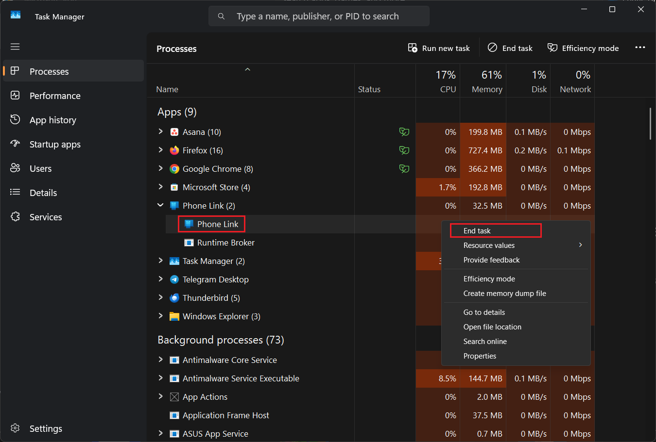 Phone Link (PhoneExperienceHost.exe) High CPU Usage on Windows 10/11 By Will Wisser Posted on November 26, 2025 7 min read 0 16 Phone Link (formerly “Your Phone”) is Microsoft’s built-in bridge between your Windows 10/11 PC and your smartphone. It lets you see phone notifications on your desktop, send and receive SMS, pull recent photos, and even make and receive calls from your computer. All of this is powered by a background component called PhoneExperienceHost.exe, which you will see in Task Manager whenever Phone Link is running or syncing. Under normal conditions, PhoneExperienceHost.exe briefly wakes up to synchronize data and then drops back down to almost zero CPU usage. When something goes wrong, it can get stuck in a loop: constantly trying to connect, re-sync, or process corrupted app data. That is when you see disproportionate CPU usage, loud fans, laggy apps, and battery drain on laptops — sometimes even when you are not actively using Phone Link at all. This tutorial walks you through a structured process to bring that CPU usage back under control. You will learn how to quickly stabilize your system, verify that PhoneExperienceHost.exe is legitimate, repair or reset the Phone Link app, tune startup and background behavior, and, if necessary, disable or uninstall Phone Link completely. Quick Triage: Fast Actions When CPU Is Spiking If your PC is currently hot, noisy, or lagging, start here. End Phone Link and PhoneExperienceHost.exe Press Ctrl + Shift + Esc to open Task Manager. On the Processes tab, find Phone Link (or Your Phone on older builds). Select it and click End task. Switch to the Details tab and find PhoneExperienceHost.exe. Right-click PhoneExperienceHost.exe and choose End task if it is still running. Block Phone Link in the background (temporarily) Open Settings → Apps. Open Installed apps (or Apps & features on Windows 10). Locate Phone Link and select Advanced options. Under Background apps permissions, choose Never. Restart Windows Save your work. Restart the computer. After sign-in, open Task Manager again and check whether Phone Link / PhoneExperienceHost.exe returns to high CPU. If you never use Phone Link Decide whether you want to fully disable Phone Link or uninstall it. Use the later sections in this guide to either turn it off or remove it completely. If the high CPU usage comes back, move on to the deeper steps below. Prerequisites and Safety Notes Before making bigger changes, keep these in mind. Use a Windows account with administrator rights for repairs and PowerShell steps. Create a system restore point so you can roll back if something goes wrong. Make sure you remember your Microsoft account credentials and have your phone nearby. Be careful with PowerShell commands and type them exactly as shown. Have security software ready in case the process turns out to be malicious. Step-by-Step Guide to Fix Phone Link High CPU 1. Confirm that PhoneExperienceHost.exe Is Legitimate Some malware disguises itself with names that look like Windows components. First, make sure you are dealing with the real Phone Link host process. Open Task Manager and go to the Details tab. Find PhoneExperienceHost.exe in the list. Right-click PhoneExperienceHost.exe and choose Open file location. Check the path: The genuine file should normally reside in a subfolder of C:\Program Files\WindowsApps\Microsoft.YourPhone_…. If it is in C:\Windows, C:\Windows\System32, or a random user folder, treat it as suspicious. Open file Properties and switch to the Digital Signatures tab: Make sure the signer is Microsoft Corporation. If there is no valid Microsoft signature, treat this as a possible malware case and plan to scan the system. If the file location or signature looks wrong, handle it as a security issue (see 8. Scan for Malware or Unwanted Software) before you tweak Phone Link itself. 2. Observe CPU Usage Pattern Understanding when CPU spikes occur helps narrow down the cause. Open Task Manager and, on the Processes tab, click the CPU column to sort by usage. Watch what happens when you: Actively use Phone Link (open messages, photos, or calls) — short CPU bursts are normal. Minimize Phone Link and leave the PC idle — CPU usage should drop back to near 0%. If PhoneExperienceHost.exe stays in high single digits or double digits for many minutes while idle, it needs fixing. 3. Cleanly Restart Phone Link A stuck session or half-broken connection is a very common trigger. In Task Manager, end the Phone Link process. In the Details tab, end any remaining PhoneExperienceHost.exe process. Wait a few seconds until both processes disappear from the list. Launch Phone Link again from the Start menu. Let it reconnect to your phone and finish initial syncing. Watch CPU usage: Short spikes are fine during reconnection and the first sync. After a minute or two of idle time, CPU usage should drop close to 0%. If high CPU usage quickly returns and stays, move on to the next steps. 4. Turn Off Startup and Background Activity Even if you never click the app, Windows may keep it alive in the background. Disable the startup entry: Open Settings → Apps → Startup. Find Phone Link in the list. Toggle Phone Link to Off. Block background activity: Open Settings → Apps → Installed apps (or Apps & features). Locate Phone Link and select Advanced options. Under Background apps permissions, choose Never. Turn off any extra option that explicitly allows it to run in the background. Disable system integration toggles: On Windows 11, open Settings → Bluetooth & devices and turn off any Phone Link–related integration toggle. On Windows 10, open Settings → Phone and disable options that link your phone to this PC. Restart Windows and see whether PhoneExperienceHost.exe still appears and uses CPU. 5. Repair and Reset the Phone Link App Corrupted app cache or settings can cause strange background loops and high CPU. Open Settings → Apps → Installed apps (or Apps & features). 