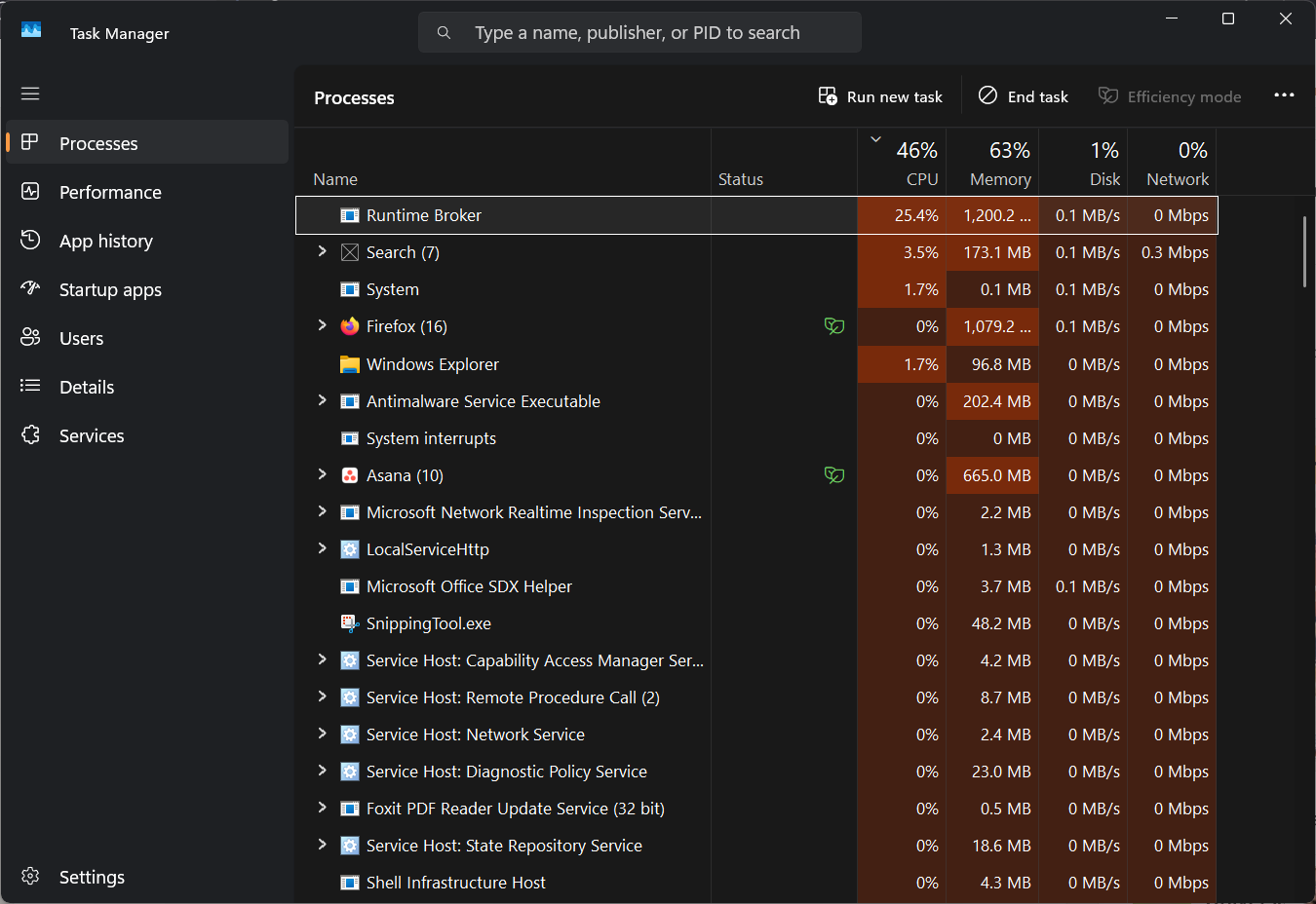 Runtime Broker (RuntimeBroker.exe) High Memory & CPU: How to Fix on Windows 10/11 By Will Wisser Posted on November 1, 2025 3 min read 0 27 If Runtime Broker (RuntimeBroker.exe) periodically jumps to high memory and CPU, Windows may feel sluggish, fans can ramp up, and apps may stutter after notifications or background refreshes. The broker itself is legitimate—it enforces app permissions and coordinates background tasks for Microsoft Store (UWP) apps. When it runs hot, the root cause is almost always a noisy app, pushy Windows tips/Spotlight, or a corrupted Store cache. Use this guide to stabilize the system quickly, then identify and eliminate the trigger with safe, reversible steps. Quick Fixes Try these low-effort actions first; they resolve many cases in under two minutes. Restart Runtime Broker — Ctrl+Shift+Esc → Task Manager → Processes → Runtime Broker → End task (it restarts automatically). Disable Windows Tips — Settings → System → Notifications → uncheck Get tips and suggestions when using Windows. Update Store Apps — Microsoft Store → Downloads → Check for updates → Update all. Reset Store Cache — Win+R → wsreset.exe → Enter. Reboot — especially after Windows/Store updates; recheck idle behavior for a few minutes. Sanity Check the File Path — Task Manager → Details → right-click RuntimeBroker.exe → Open file location; it must be C:\Windows\System32\RuntimeBroker.exe. Requirements & Safeguards These keep changes safe and make rollbacks painless. Administrator Account to adjust services, repair apps, and run system tools. Create a Restore Point — Win+R → SystemPropertiesProtection.exe → Create. Connectivity for Windows Update and Microsoft Store updates. Optional Tools for deeper signal: Resource Monitor (resmon.exe) Event Viewer (eventvwr.msc) Windows Terminal (Admin) for DISM/SFC and PowerShell checks Step-By-Step Guide: Diagnose and Fix the Cause Work in order and check Task Manager after each step. Aim to identify the exact trigger with minimal disruption. Verify the Binary and Digital Signature Rule out impostors and confirm you’re dealing with the Microsoft process. Task Manager → Details → right-click RuntimeBroker.exe → Open file location → verify C:\Windows\System32\RuntimeBroker.exe. Right-click → Properties → Digital Signatures → verify signer is Microsoft Windows. If the path/signature is wrong, skip to Step 9 (Security Check) immediately. Establish an Idle Baseline and Observe Triggers Measurement beats guesswork; capture idle behavior and correlate spikes with events. Task Manager → Details → add columns CPU time and Working set (memory). Idle the system for 5–10 minutes. Then trigger a few notifications (Mail/Calendar/Weather) and observe if spikes directly follow. Disable Windows Tips and First-Run Experiences These suggestion pop-ups are frequent wake-up calls for Runtime Broker. Settings → System → Notifications. Uncheck Get tips and suggestions when using Windows. Uncheck Suggest ways to get the most out of Windows and finish setting up this device. Uncheck Show the Windows welcome experience after updates and when signed in to show what’s new and suggested. Tame Windows Spotlight and Content Feeds Static backgrounds and fewer content calls reduce Broker activity. Windows 11: Settings → Personalization → Lock screen → choose Picture (not Spotlight). Windows 10: Settings → Personalization → Lock screen → Picture/Slideshow and uncheck Get fun facts, tips, and more… If desktop Spotlight is enabled (Win11): Settings → Personalization → Background → Picture. Limit Background Activity for Noisy Apps Over-eager Store apps are the most common culprit; restrict their background work. Windows 11: Settings → Apps → Installed apps → choose app → Advanced options → Background app permissions: Never. Windows 10: Settings → Privacy → Background apps → disable non-essentials. Prioritize Mail & Calendar, Photos, Weather, News, Xbox Game Bar, Phone Link; observe Runtime Broker for a few minutes after each change. Update Store Apps and Clear the Store Cache Buggy or stale app builds regularly cause recurring Broker spikes. Microsoft Store → Downloads → Check for updates → Update all. Win+R → wsreset.exe → Enter (Store will reopen). Reboot if the reset didn’t auto-restart the Store; retest idle behavior. Repair or Reset Problematic Store Apps Resetting a single app’s state is often enough to stop repeated wake-ups. Settings → Apps → Installed apps (Win11) / Apps & features (Win10) → pick suspect app → Advanced options. Click Repair; if no change, click Reset. Relaunch and monitor Runtime Broker again. Test the Time Broker Service (Advanced, Reversible) Background task churn flows through TimeBrokerSvc; toggling it is a clean diagnostic. Win+R → services.msc → locate Time Broker / TimeBrokerSvc. Properties → set Startup type: Manual → Stop → OK. Use the PC normally for 10–15 minutes and observe. Note: Live tiles (Win10), Alarms, some push notifications, and Store app refresh may pause. Revert to Automatic (Delayed Start) when done testing. Security Check for Masquerading An off-path or unsigned executable can mimic Runtime Broker and burn resources. If the file isn’t in C:\Windows\System32 or lacks a Microsoft signature: Start → Windows Security → Virus & threat protection → Scan options → Microsoft Defender Offline scan. Remove detections, reboot, and re-validate the file path/signature. Repair System Components Corruption in the component store or system files can manifest as odd Broker activity. Open Windows Terminal (Admin) and run: dism /online /cleanup-image /restorehealth sfc /scannow Reboot and reassess Runtime Broker at idle. Collect Diagnostics for a Clear Verdict A little telemetry quickly highlights the offending app or subsystem. Resource Monitor (resmon.exe) → CPU → Processes: watch RuntimeBroker.exe for 10