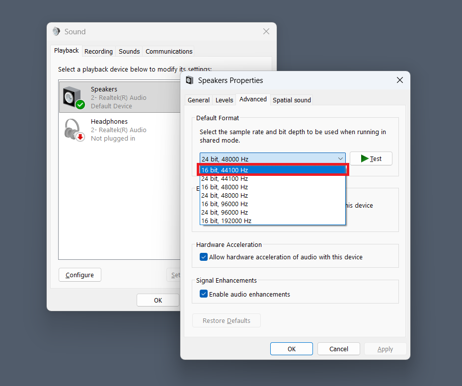 Windows Audio Device Graph Isolation (audiodg.exe) High CPU and Memory Usage: Six Ways to Fix the Problem By Will Wisser Posted on November 9, 2025 3 min read 0 7 Windows Audio Device Graph Isolation, also known as audiodg.exe, is the core audio engine in Windows responsible for handling digital signal processing, effects, and third-party audio enhancements. This process runs separately from the main Windows Audio service (svchost.exe) to prevent audio driver crashes from affecting the entire system. It’s a well-intentioned design choice for stability and security — but when it misbehaves, it can consume excessive CPU or memory resources and seriously degrade performance. If you’ve ever noticed your system fan spinning up or your laptop battery draining quickly while listening to music, gaming, or using voice chat, audiodg.exe might be the culprit. High resource usage by this process is often linked to outdated drivers, misconfigured enhancements, or buggy third-party sound utilities. In rare cases, malware masquerading as audiodg.exe can also cause similar symptoms, making proper diagnosis essential. This guide walks you through identifying, troubleshooting, and resolving high CPU or RAM usage caused by audiodg.exe. You’ll learn how to safely disable unnecessary audio enhancements, update or reset drivers, and perform advanced isolation tests to determine whether the issue stems from your audio hardware, driver stack, or system configuration. By the end, you’ll not only fix the issue but also understand how to prevent it from recurring — without compromising your audio quality or system stability. Initial Diagnostics and Fast Remedies Before diving into detailed steps, start with these quick checks to see if the issue can be fixed immediately: Restart the Windows Audio service Press Win + R, type services.msc, and press Enter. Locate Windows Audio and Windows Audio Endpoint Builder. Right-click each and select Restart. Observe whether CPU or memory usage by audiodg.exe drops. Reboot your PC Temporary memory leaks in the audio driver stack can accumulate over time. Restarting clears them and resets audiodg.exe behavior. Disconnect external audio devices Remove USB DACs, Bluetooth headsets, or HDMI audio connections one by one. If CPU usage drops after removing one, that device or its driver is the likely cause. Run a quick malware scan Open Windows Security → Virus & threat protection → Quick scan. If the file path of audiodg.exe differs from C:\Windows\System32\audiodg.exe, it may be malicious. If these actions reduce CPU or RAM usage, you can skip the deeper troubleshooting. Otherwise, continue below. Prerequisites Administrative privileges on your Windows account. Access to Device Manager and Control Panel → Sound settings. Optional: A system restore point, in case you need to revert driver changes. Optional tools: Process Explorer (Microsoft Sysinternals) to inspect the audiodg.exe process in detail. Step-by-Step Troubleshooting and Fixes 1. Disable Audio Enhancements Audio enhancements add reverb, equalization, and spatial effects — but they’re a common source of high CPU usage. 1.1 Open Sound Settings: Right-click the speaker icon in the taskbar → Sounds → Playback tab. 1.2 Access Device Properties: Select your active playback device (usually “Speakers” or “Headphones”). Click Properties → Enhancements tab. 1.3 Turn Off Enhancements: Check Disable all enhancements or manually uncheck all boxes. Click Apply, then OK. 1.4 Reboot and Monitor: Open Task Manager and observe CPU/memory usage under audiodg.exe while playing audio. 2. Update or Roll Back Audio Drivers Driver conflicts are another major cause of resource spikes in audiodg.exe. 2.1 Update drivers: Press Win + X → Device Manager → Sound, video, and game controllers. Right-click your sound card (e.g., Realtek High Definition Audio, NVIDIA High Definition Audio) → Update driver → Search automatically. 2.2 Roll back driver (if the issue began after an update): In Device Manager, open the Properties → Driver tab. Click Roll Back Driver, if available. 2.3 Reinstall drivers manually (advanced): Download the latest driver directly from your laptop or motherboard manufacturer’s support page. Uninstall the old one via Device Manager → Uninstall device, then install the new package. 3. Adjust Sample Rate and Bit Depth High sampling rates can strain audio processing, especially on low-power systems. 3.1 Open Sound Settings → Playback → Properties → Advanced. 3.2 Under Default Format, select 16 bit, 44100 Hz (CD Quality). 3.3 Apply changes and test. 3.4 If the issue persists, try 24 bit, 48000 Hz, which some drivers handle more efficiently. 4. Isolate Third-Party Audio Software If you have sound utilities like Nahimic, DTS Sound, or Dolby Audio, they may inject plugins into audiodg.exe. 4.1 Temporarily disable startup entries: Press Ctrl + Shift + Esc → Startup tab. Disable third-party audio software. 4.2 Restart the system and observe CPU usage. 4.3 If performance improves, keep the app disabled or update it to the latest version. 5. Adjust Audio Priority in Windows Registry (Advanced) This method helps when audiodg.exe monopolizes CPU even when idle. 5.1 Open Registry Editor: Press Win + R, type regedit, and press Enter. 5.2 Navigate to: HKEY_LOCAL_MACHINE\SOFTWARE\Microsoft\Windows\CurrentVersion\Audio 5.3 Modify or create the following values: Name: PerformancePriority Type: DWORD (32-bit) Value: 1 (default is usually 2 or 3; lower value reduces CPU priority) 5.4 Restart Windows Audio services or reboot the PC. Note: Modifying registry keys incorrectly can affect system stability — always back up before editing. 6. Verify System Integrity and Configuration If none of the above steps work, perform a health check of your system components. 6.1 Run System File Checker: sfc /scannow (Run in an elevated Command Prompt.) 6.2 Check for corrupted drivers: DISM /Online /Cleanup-Image